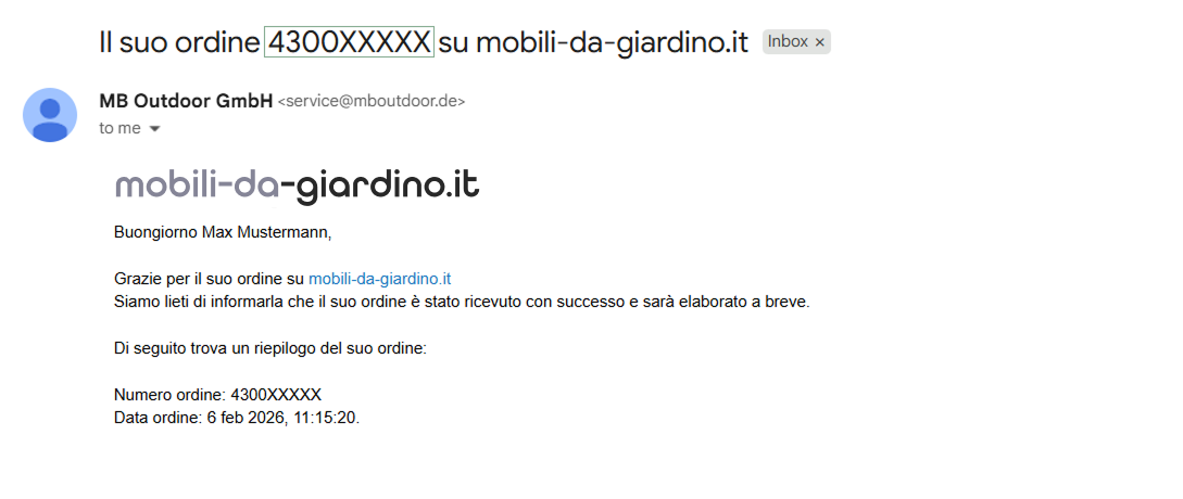 1.2 Il responsabile del trattamento dei dati forniti all'interno del nostro sito web ai sensi del Regolamento generale sulla protezione dei dati (RGPD) è MB Outdoor GmbH, Bruchweg 18, 46509 Xanten, Germania, , e-mail: info@mobili-da-giardino.it. Il responsabile del trattamento dei dati personali è la persona fisica o giuridica che, da sola o unitamente ad altri, determina le finalità e gli strumenti dell'elaborazione di dati personali.